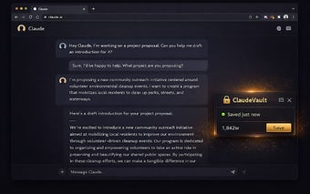 ClaudeVault is een handige Chrome-extensie die automatisch gesprekken met Claude.ai opslaat, waardoor onderbroken antwoorden eenvoudig kunnen worden hervat. Deze tool werkt op de achtergrond en slaat elke conversatie elke zes seconden op, waardoor je nooit meer belangrijke context verliest. Het biedt ook een geheugenprofiel, waarmee je jouw context in elke chat kunt injecteren met één klik. Met een opzoekbare conversatiekluis kun je tot vijf gesprekken opslaan en zelfs een woordenteller per gesprek bekijken.